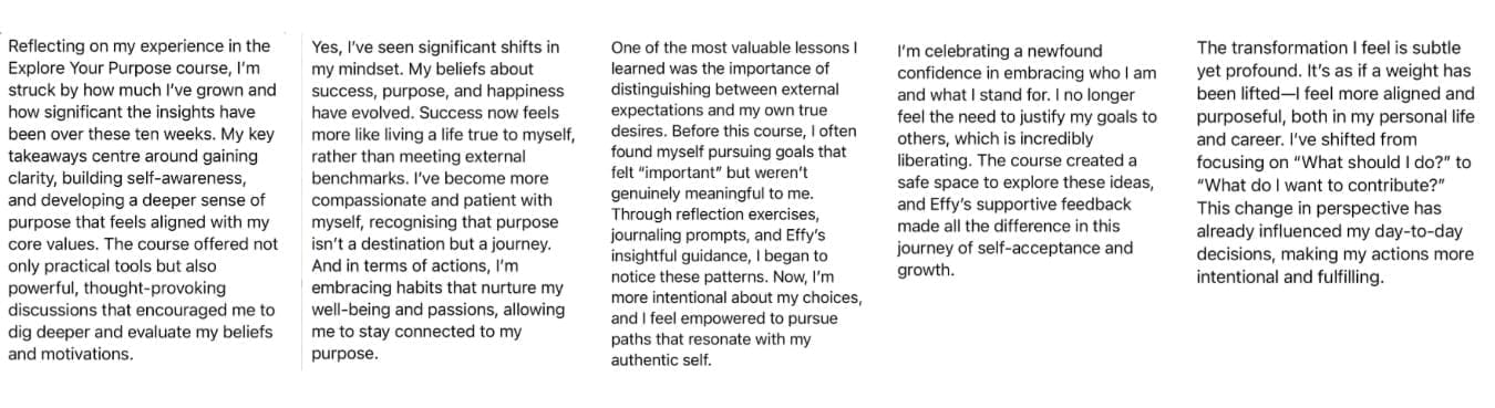 This programme has the power to change your life! When you commit to personal growth, MAGIC happens. When you step into your purpose and your power, not only do you feel more fulfilled, your relationships tend to thrive, your physical health improves, your energy shifts and you attract aligned people and opportunities. It ripples into your WHOLE life.